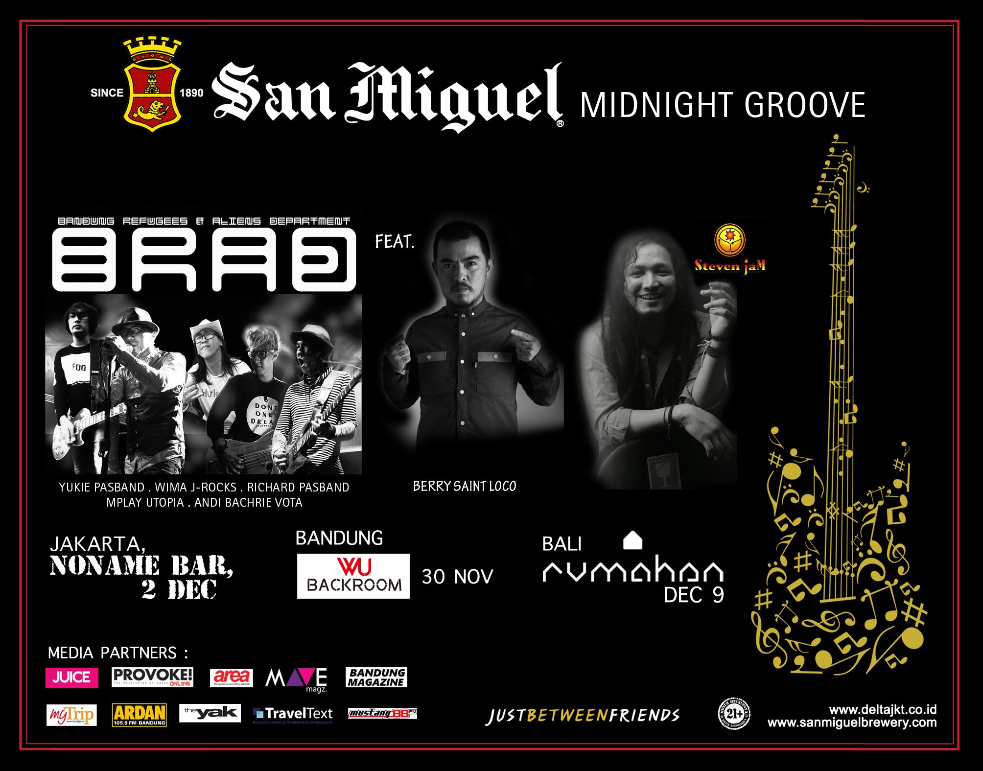 - Rabu, 30 November di Backroom Bandung dengan performance dari The BRAD Feat Beery Saint Loco.
