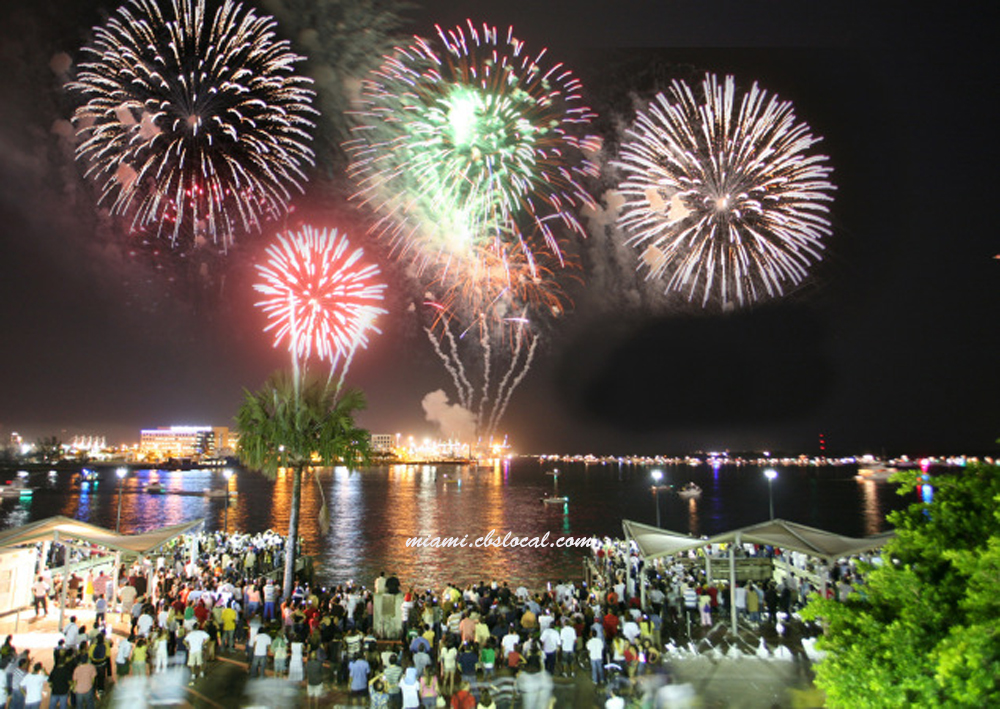 Keriaan berpusat di downtown, Bayfront Park, dimulai dengan tari-tarian pada pukul 8 malam hingga puncaknya kembang api saat tengah malam. Di South Beach, Lummus Park di Ocean Drive juga biasa digelar pesta dari pukul 9 malam sampai 2 pagi. Pesta di sini juga dimeriahkan musik hidup dan kembang api. Untuk party lovers, banyak hotel mewah di Miami juga menyelenggarakan acara eksklusif dengan pesta kembang api privat.