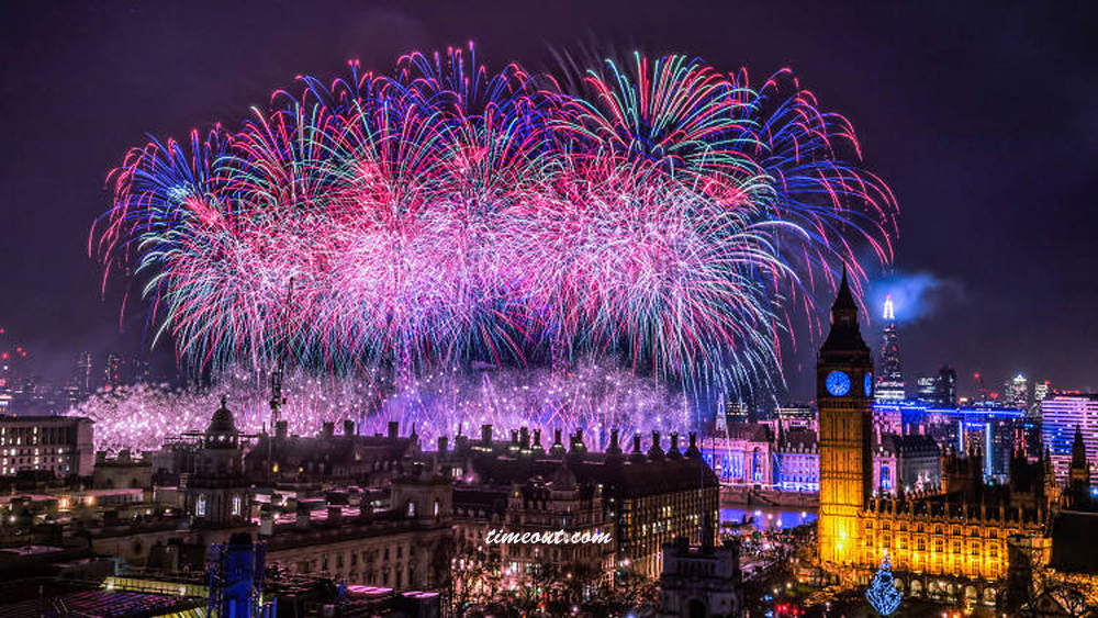 Pusat perayaan tahun baru di London ada di Sungai Thames, London Eye, dan Big Ben. Tiga ratusan ribu orang berkumpul di tepi Sungai Thames dan di beberapa jembatannya untuk menyaksikan pertunjukan lampu dan kembang api yang spektakuler, dengan London Eye dan Houses of Parliament sebagai latar belakang. Kemeriahan dilanjutkan dengan banyaknya after-party yang digelar sampai pagi. Dan pada hari pertama tahun barunya jalan-jalan di pusat kota London disemarakkan parade yang colorful, marching bands, para penari dengan kostum menarik, dan tak ketinggalan prosesi kuda-kuda kerajaan.