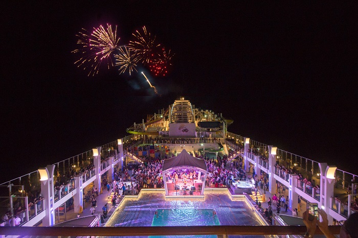 Untuk paket perjalanan 5D4N di hari terakhir akan disajikan pertunjukan kembang api, di mana Genting Dream merupakan kapal yang mendapatkan izin untuk pertunjukan kembang api. Perlu Trippers tahu, nggak semua kapal pesiar mendapatkan izin tersebut. So... bolehlah kalau Trippers naik Genting Dream sedikit berbangga dengan adanya fasilitas ini.