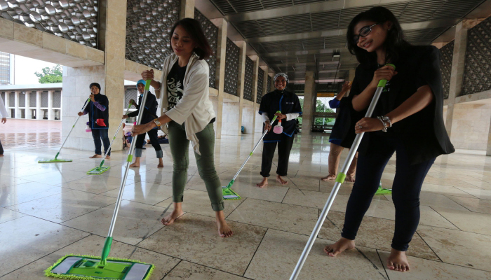 Bersih-Bersih Masjid Istiqlal melalui layanan GO-CLEAN